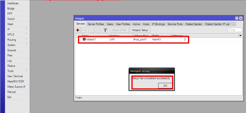 4. stelah complete buka lagi ip ==> hotspot==> kemudian pada menu